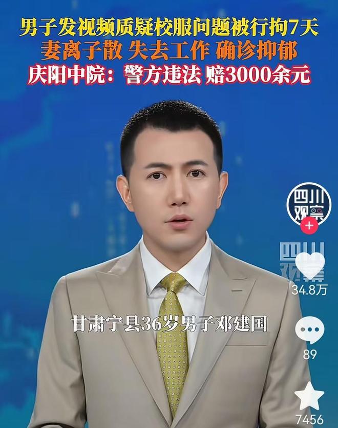 2024 年 10 月,庆阳市中院判决:宁县公安局行政拘留程序违法,赔偿邓建军 3237.08 元 —— 包括 7 天的误工费 1737.08 元和精神损害抚慰金 1500 元。
